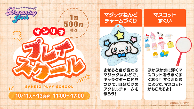 10月11日(土)~13日(月・祝)の3日間限定で、7F「サンリオキャラクターズ ドリーミングパーク」にてサンリオプレイスクールを開催します☆「マジックねんどチャームづくり」と「マスコットすくい」で遊ぼう!「マジックねんどチャーム」は、会場で作っていただくことも、購入してご自宅で作ることも可能です。ぜひこの機会に遊びにきてね♪