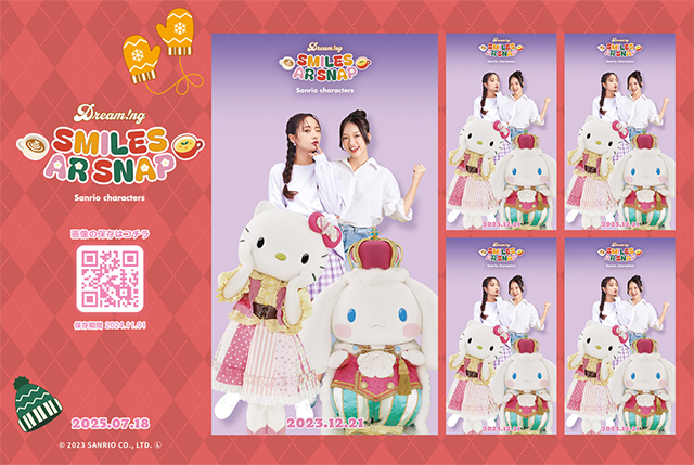 12月1 日(月)より「Dream!ng SMILES AR SNAP」が冬仕様に変身☆冬のアイテムをあしらったスペシャルフレームが選べるようになるよ♪サンリオキャラクターたちと一緒に冬ならではの一枚を撮影しよう!