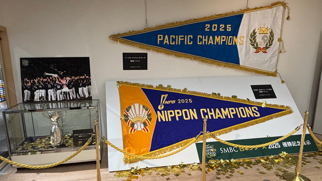 | 内容 (※11/19更新) | ペナント・チャンピオンフラッグ・トロフィーなど展示 日本一達成時等の写真を掲出、日本一決定時の映像放映 |