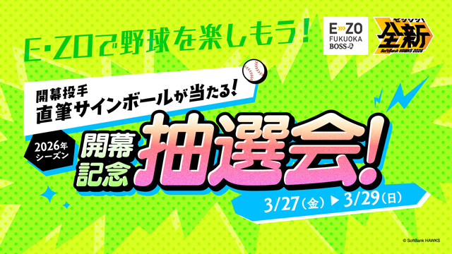 待ちに待った球春到来♪3月3日(火)よりオープン戦がスタートし、3月27日(金)には2026シーズンが開幕します。みずほPayPayドーム横の「BOSS E・ZO FUKUOKA」では、2026シーズンも野球観戦の前後に楽しめるさまざまな企画が盛りだくさん!野球もエンタメもE・ZOでお楽しみください!