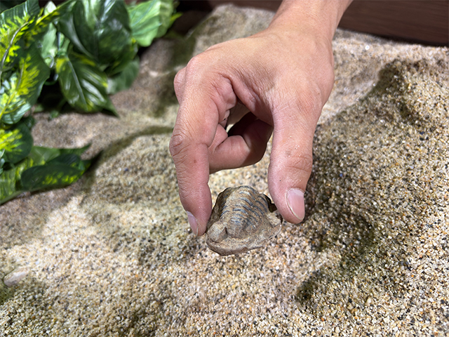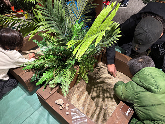 砂の中に埋まった本物の化石を制限時間内に見つけ出そう!見つけた化石の中から1個をお持ち帰りいただけます。
