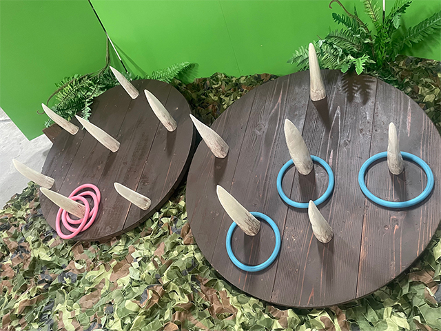 射的や輪投げにチャレンジ!恐竜グッズをゲットしよう。