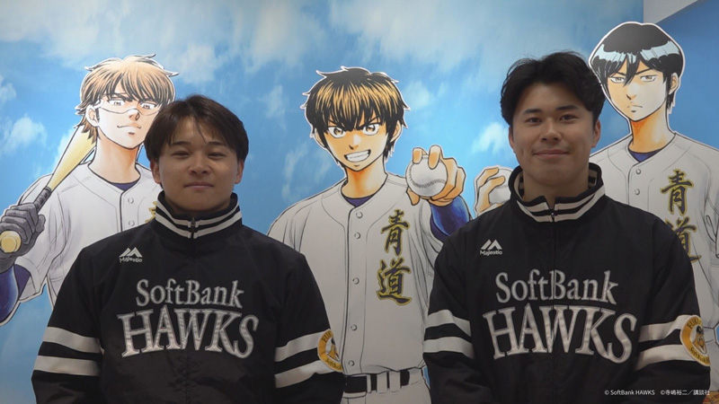 BOSS E・ZO FUKUOKA 3F「MLB café FUKUOKA」では、「大『ダイヤのA actⅡ』原画展」とコラボグルメを販売しています!両選手にコラボグルメも食べていただきました!