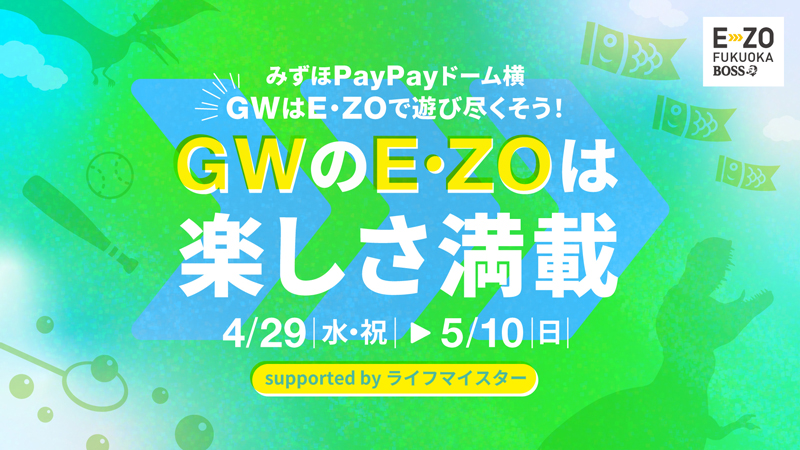 ゴールデンウィーク(以下、GW)期間中、みずほPayPayドーム横の「BOSS E・ZO FUKUOKA」は子どもから大人まで楽しめるコンテンツやイベントが盛りだくさん!この期間にE・ZOを楽しみつくしちゃおう!