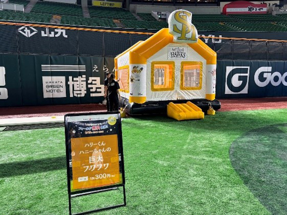 外野エリアにはストラックアウトやバッティング、ふわふわ遊具などアトラクションが登場!支払方法は現金もしくはPayPayとなります。