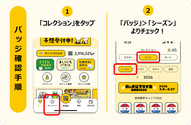 (3)翌日以降に、「ためタカ!」アプリ>コレクション>バッジよりバッジの獲得をご確認ください。