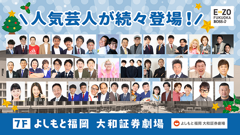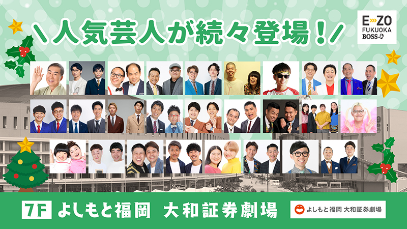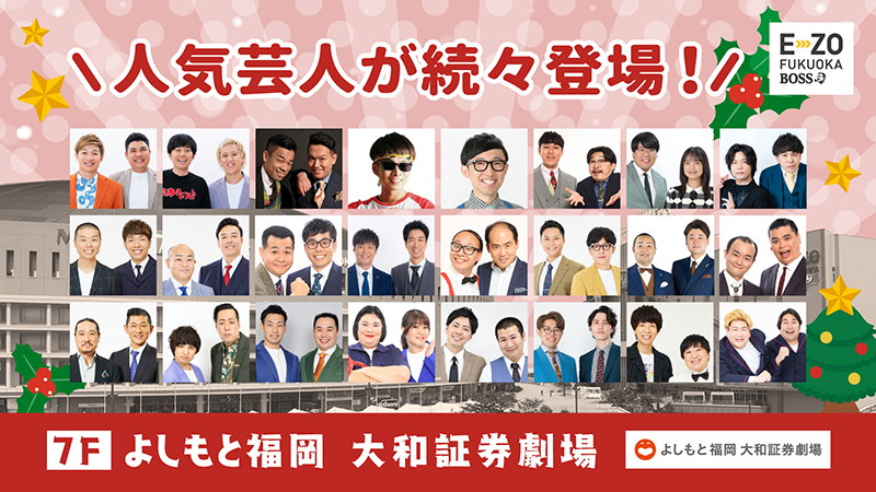 よしもと福岡 大和証券劇場の2025年12月度公開情報をお知らせします。今月は、12月31日にフクゲキ⼤晦⽇2025 THE MATCHを開催いたします!今年キングオブコントで準々決勝進出した「気になるあの娘」や「パスタとパスタ」、 M-1グランプリで3回戦進出した「ザ・ローリングモンキー」、「太宰」の4組がリーダーとなり、フクゲキの大晦日を盛り上げて今年を締めくくります!上記イベントにつきまして、12月1日より、オリジナルステッカーのプレゼントやグッズ販売も開始予定です。笑い納めはフクゲキへ!皆様のご来場を心よりお待ちしております。