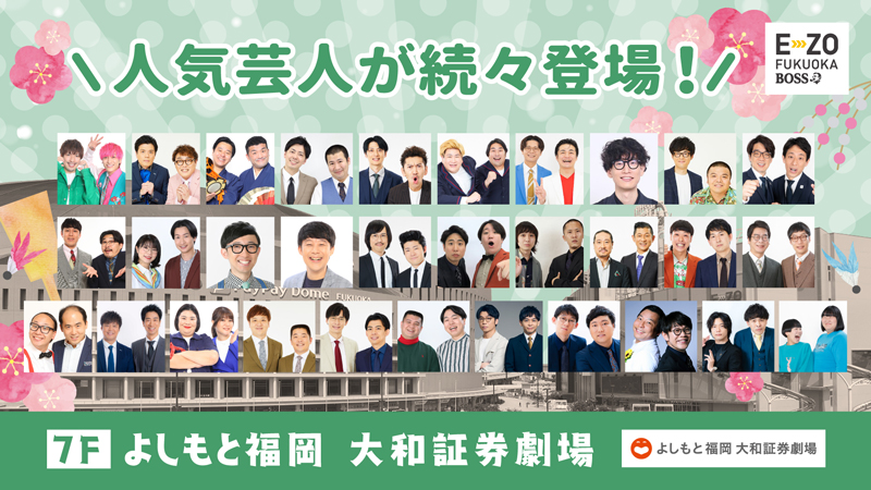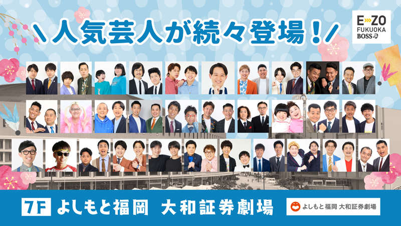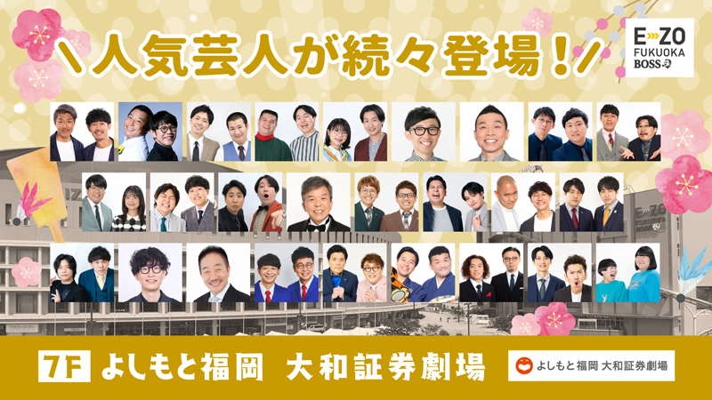 よしもと福岡 大和証券劇場の2026年1月度公開情報をお知らせします。2026年の1月も元旦から営業いたします!『福岡よしもとお笑いライブ』では、ジェラードン、ロングコートダディ、マユリカ、エバースなど、テレビでお馴染みの豪華メンバーが登場し、初笑いをお届けします!新しい1年の始まりを是非劇場でお楽しみください。皆様のご来場を心よりお待ちしております。