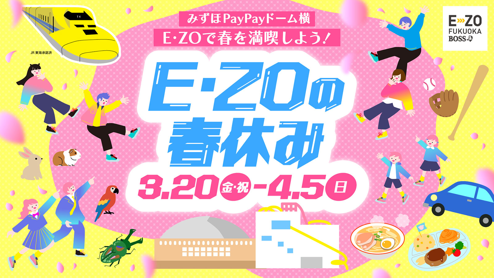 E・ZOで春を満喫しよう!!BOSS E・ZO FUKUOKAでこの春に開催するイベント情報をまとめてお知らせ!今年の春は、ご家族やお友達、野球ファンの仲間と一緒にワクワクイベント盛りだくさんのE・ZOで楽しもう♪